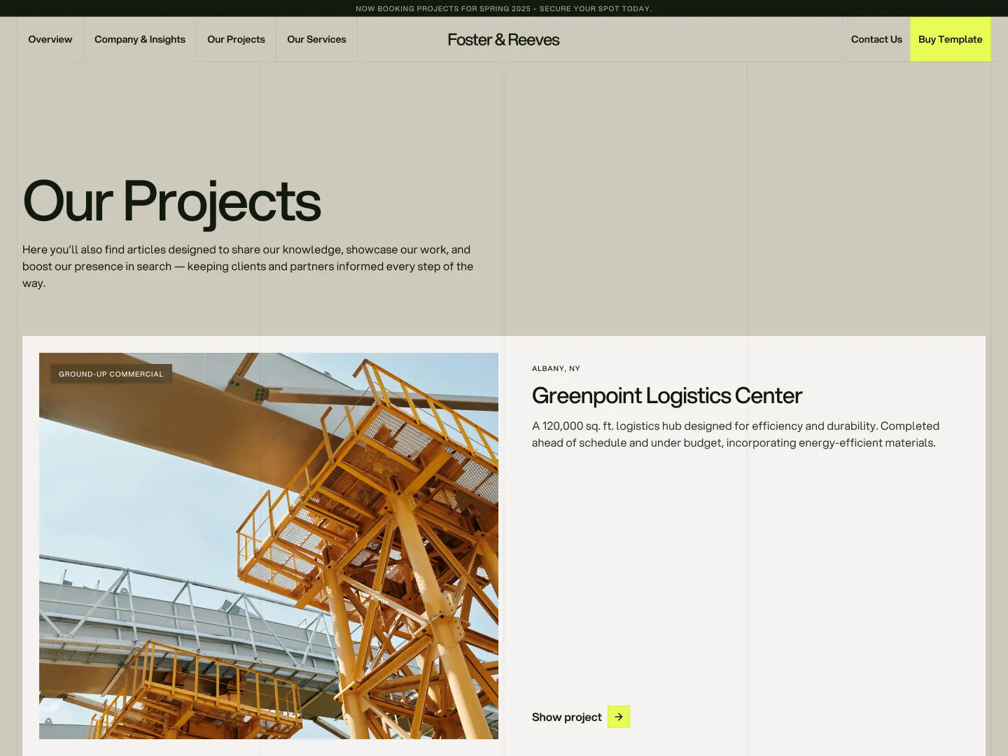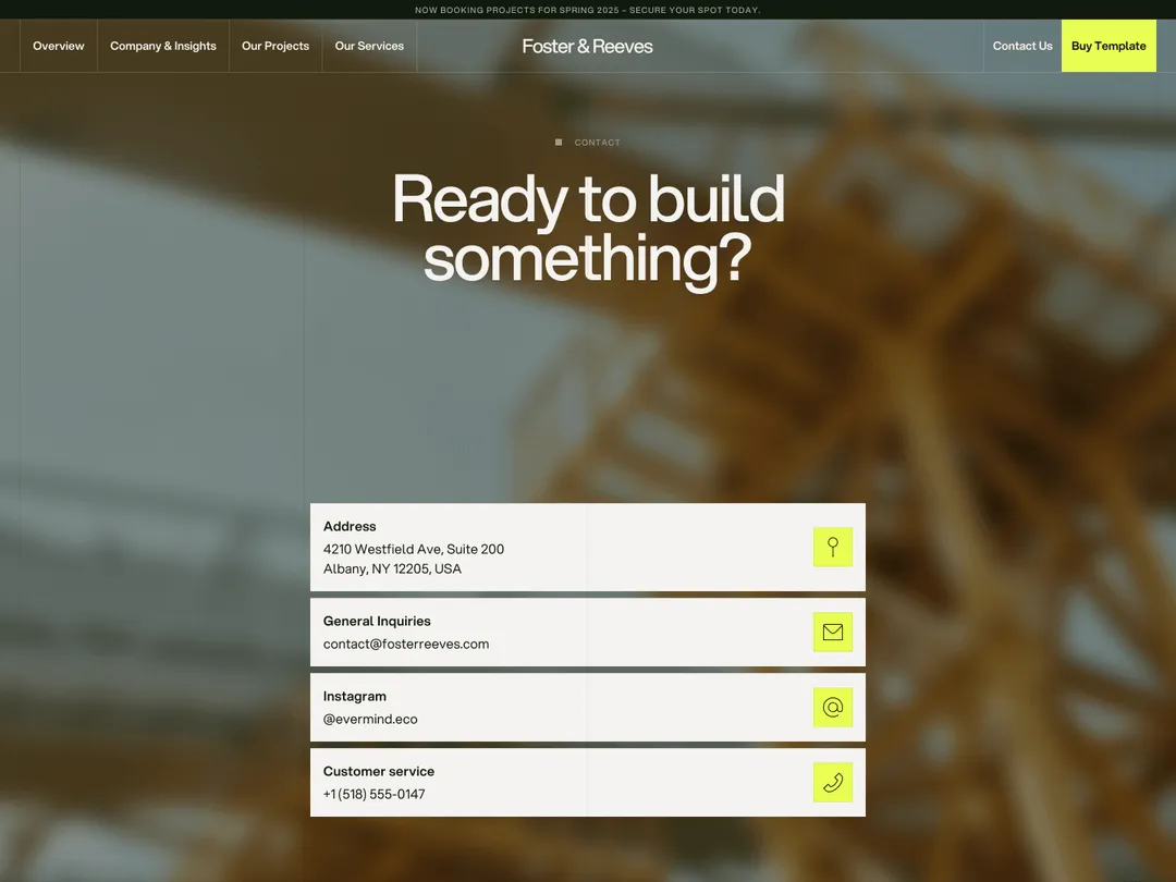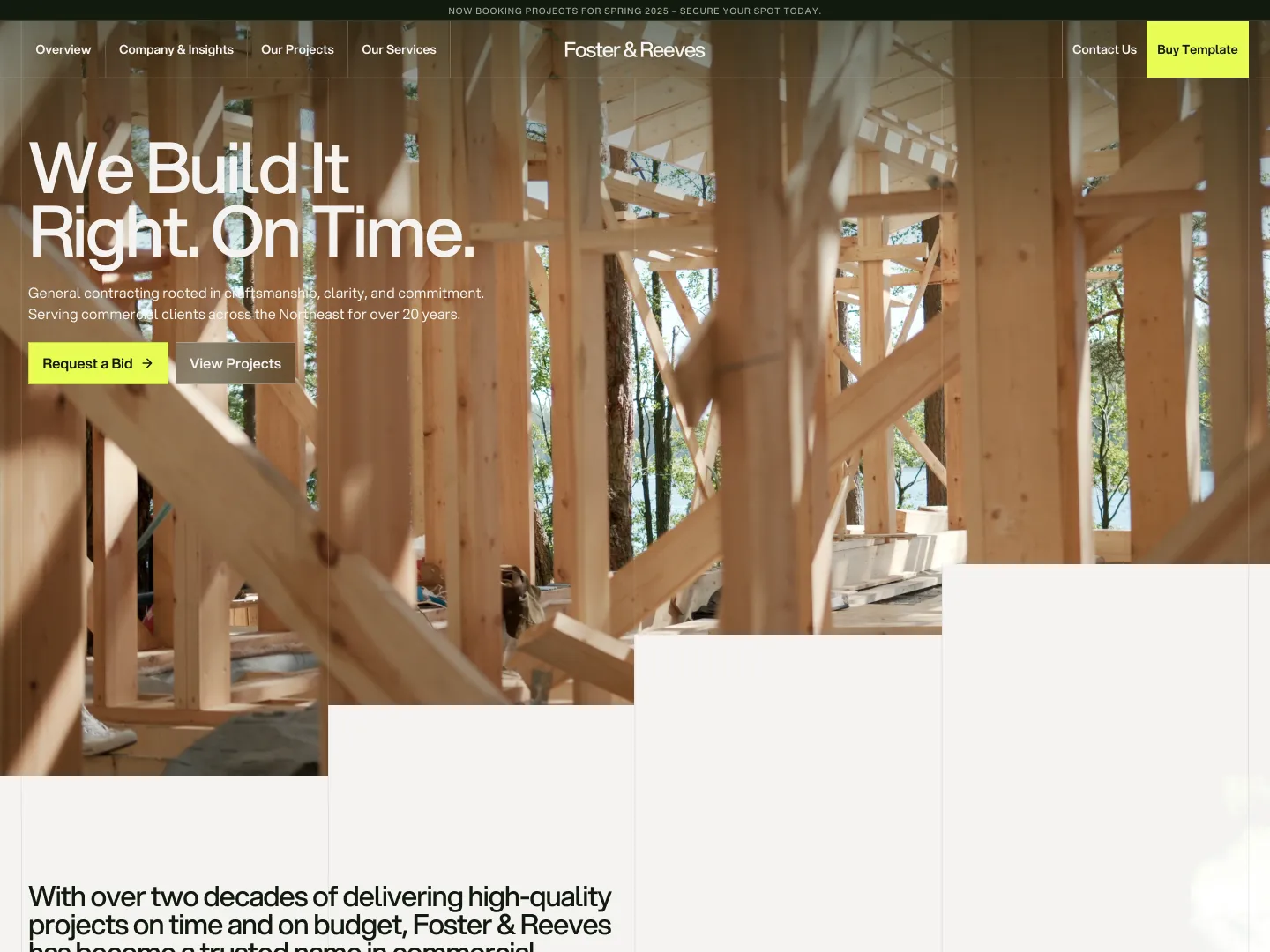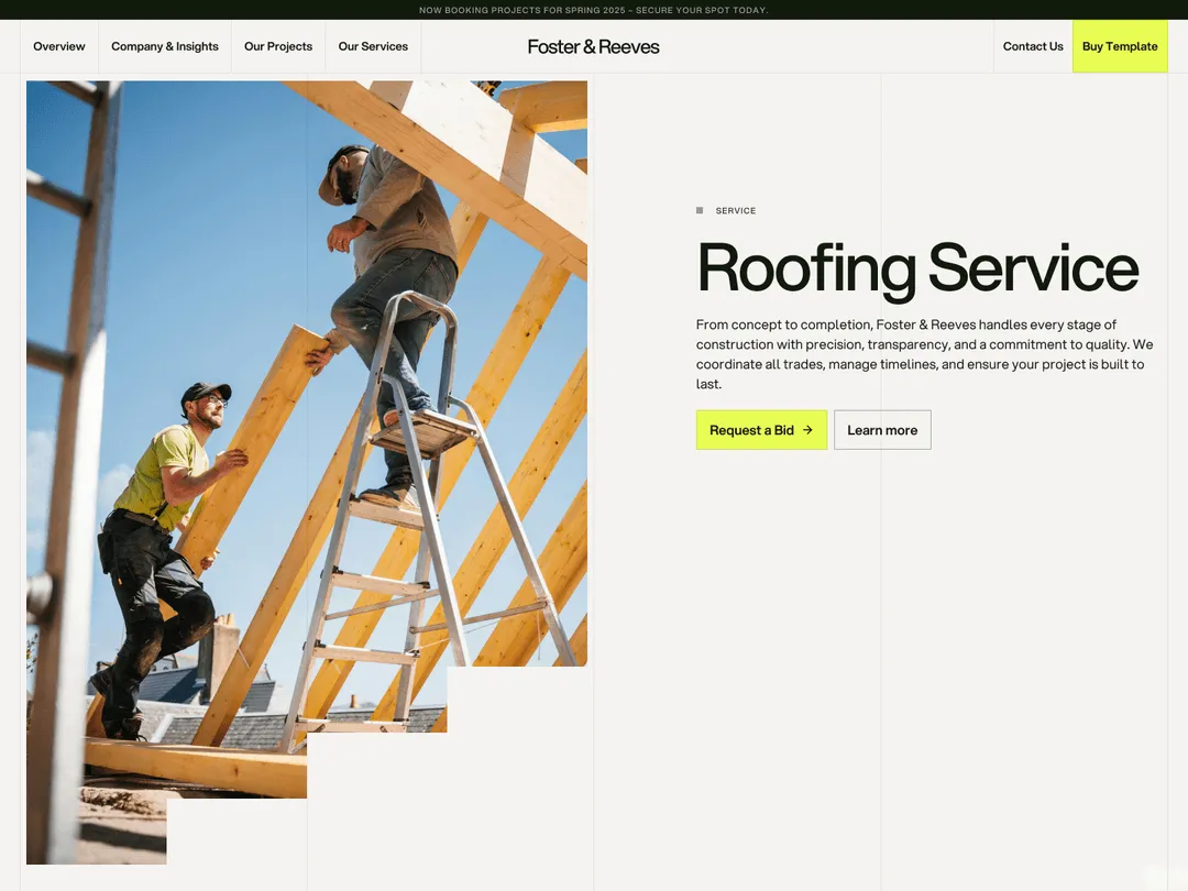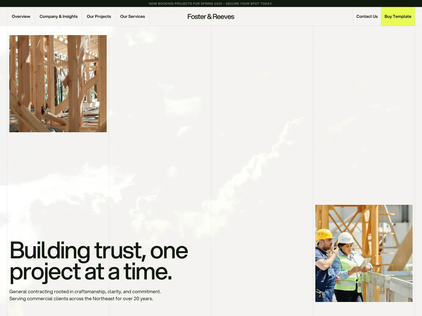 Foster & Reeves™ is a fictional general contracting brand concept, crafted by BYQ Studio as part of the Foster & Reeves Webflow template. Any references to companies, projects, or services are purely illustrative (no, we didn’t really build a skyscraper last week). This template is designed for modern contractors, builders, and service providers, offering a clean and modular Webflow framework with a timeless professional aesthetic. All rights reserved.