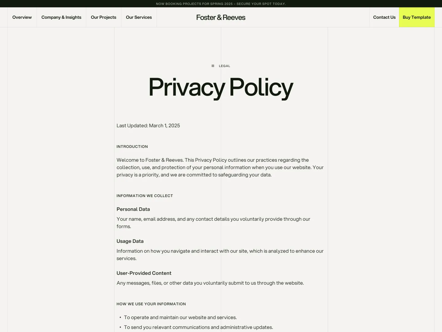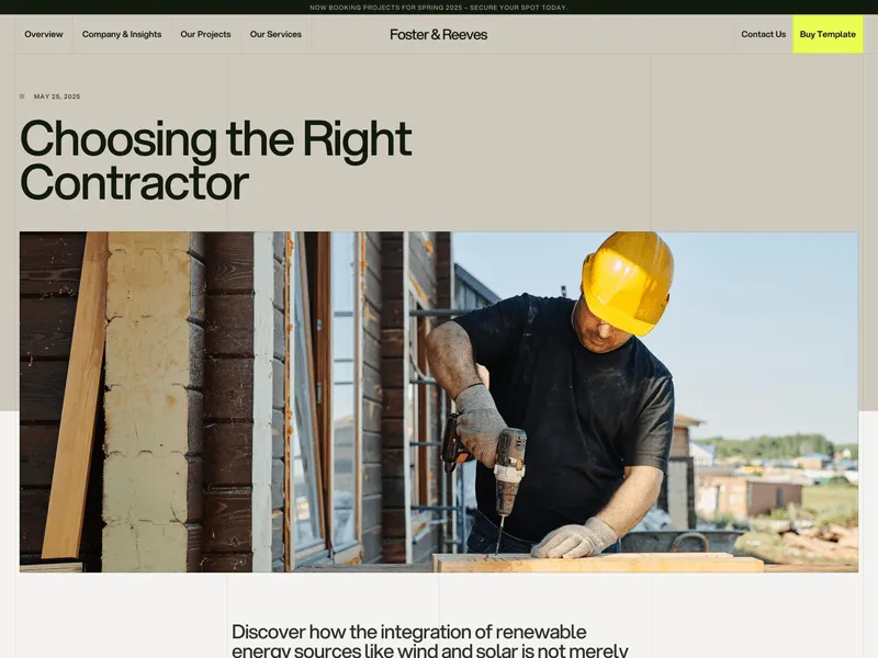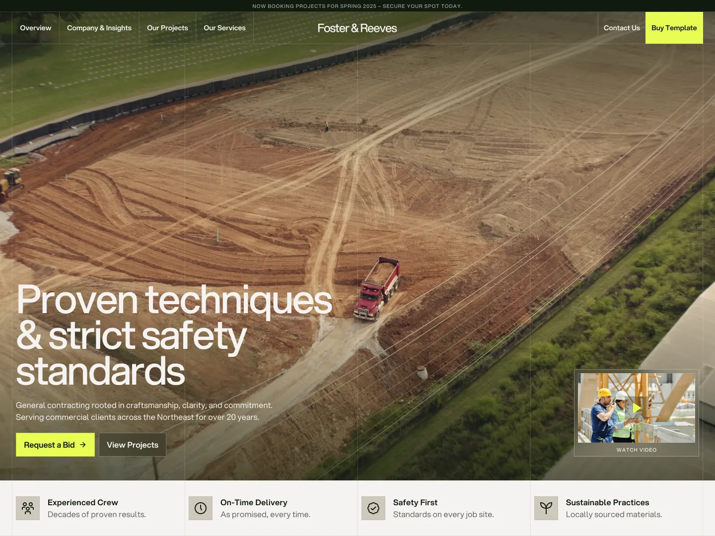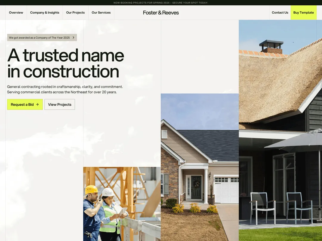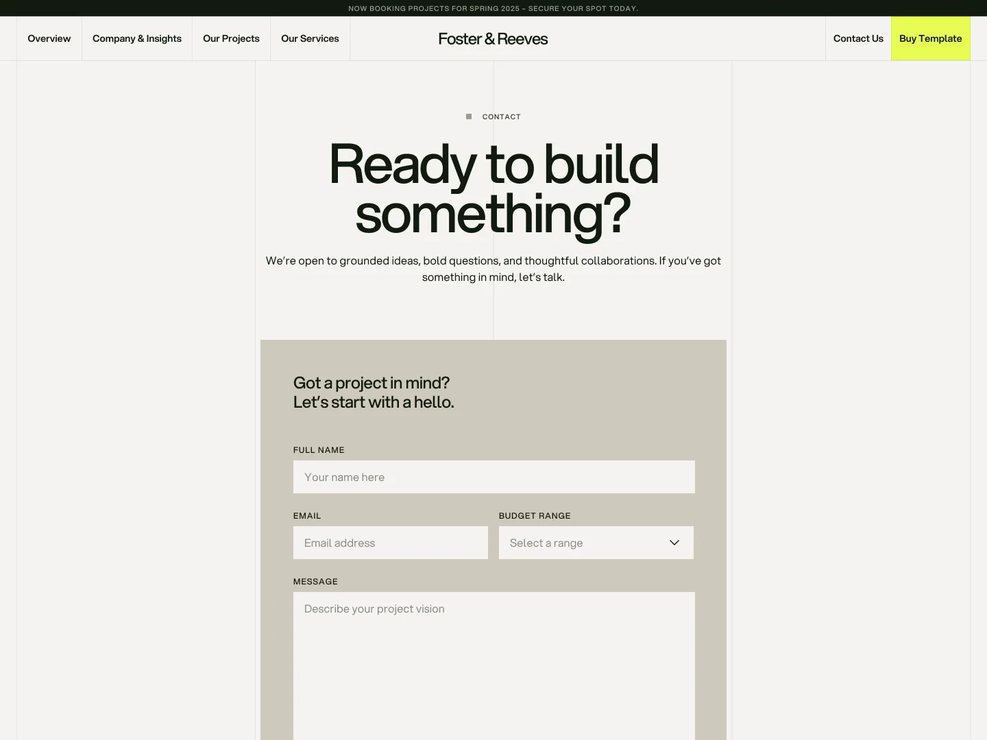Foster & Reeves™ is a fictional general contracting brand concept, crafted by BYQ Studio as part of the Foster & Reeves Webflow template. Any references to companies, projects, or services are purely illustrative (no, we didn’t really build a skyscraper last week). This template is designed for modern contractors, builders, and service providers, offering a clean and modular Webflow framework with a timeless professional aesthetic. All rights reserved.